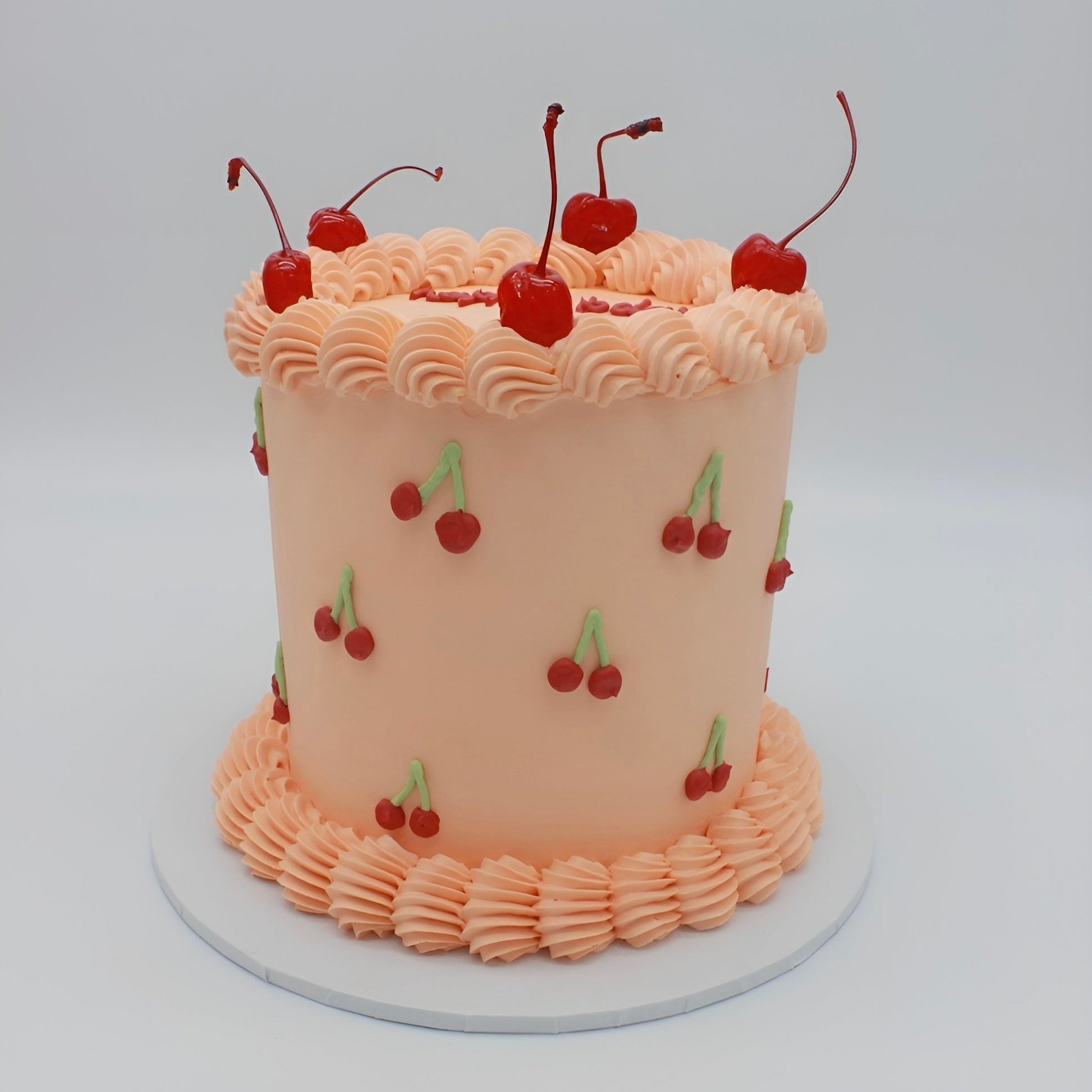 Hand piped mini cherries on the sides